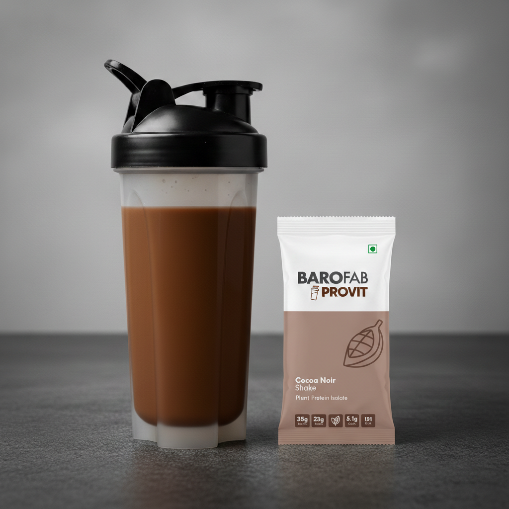 A rich vegan chocolate shake for those avoiding dairy, supporting muscle recovery, sustained energy, and complete daily protein intake with easy gut tolerance.